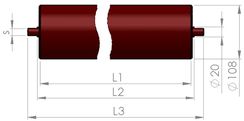 Plášť Ø108×4,0;, lisovaná čela s ložisky 6204 zalisovaná v plášti (možno vyrobit i se zavařenými čely), labyrintové těsnění, základní nátěr.