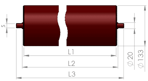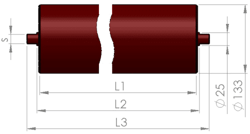 Plášť Ø133×4,0;, lisovaná čela s ložisky 6204 zalisovaná v plášti (možno vyrobit i se zavařenými čely), labyrintové těsnění, základní nátěr.